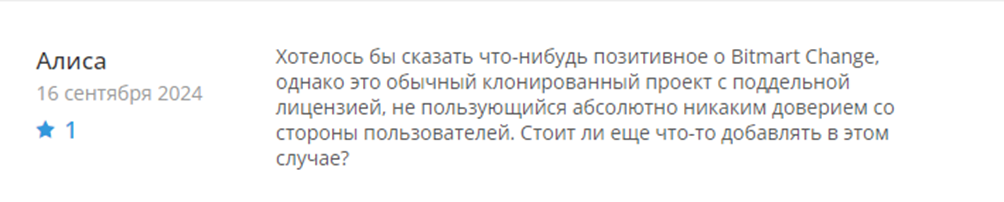 Обзор отзывов пользователей о Bitmart Change показывает, что многие клиенты сталкиваются с серьезными проблемами при работе с этой платформой. Негативные отзывы, собранные из различных источников, свидетельствуют о том, что биржа вызывает множество нареканий.