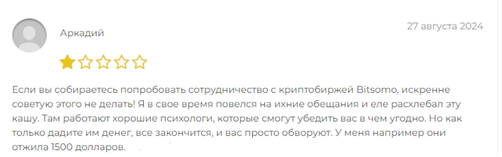 Отзывы пользователей о бирже Bitsomo часто наполнены негативом и разочарованием. Жертвы мошенничества сообщают о множестве проблем, связанных с использованием этой платформы, что служит тревожным сигналом для потенциальных клиентов. Вот что говорят пострадавшие: