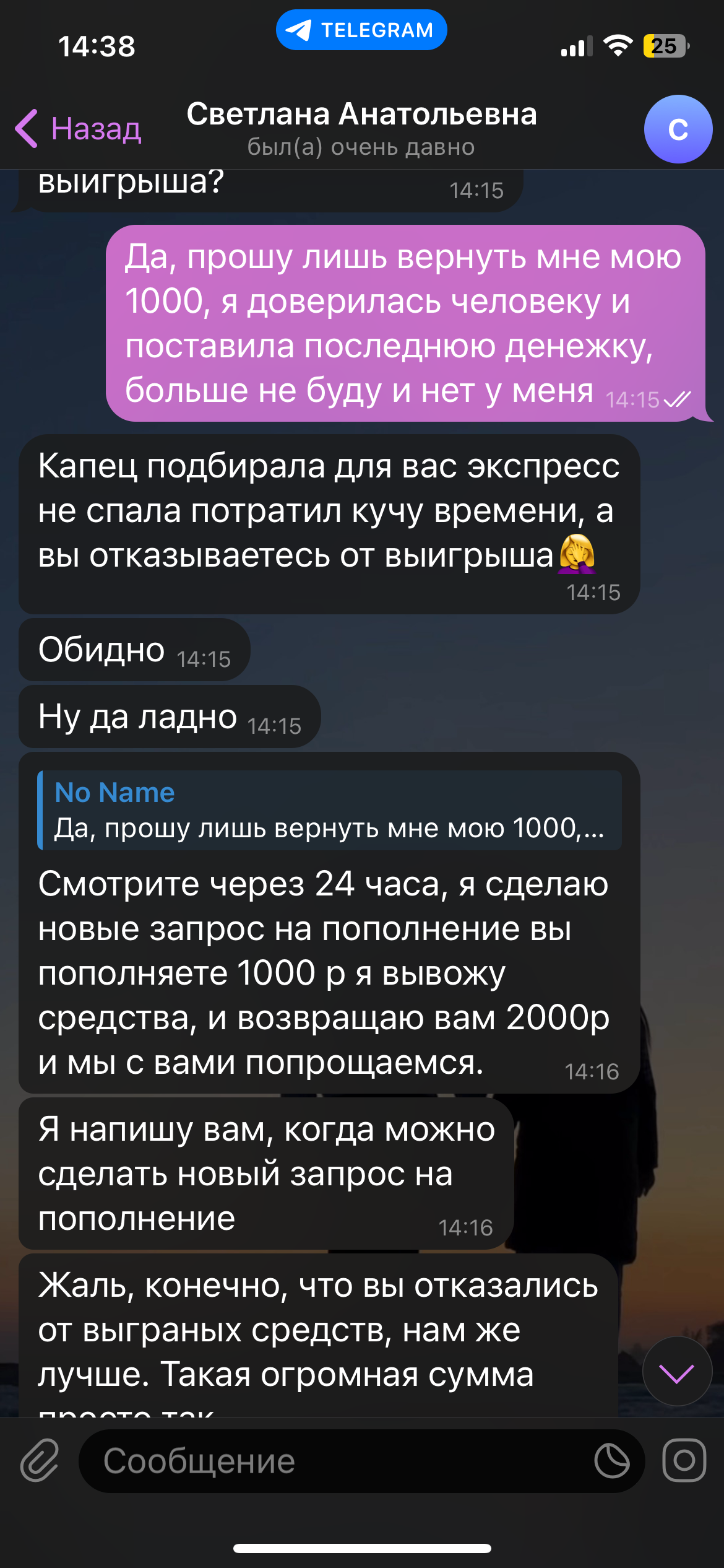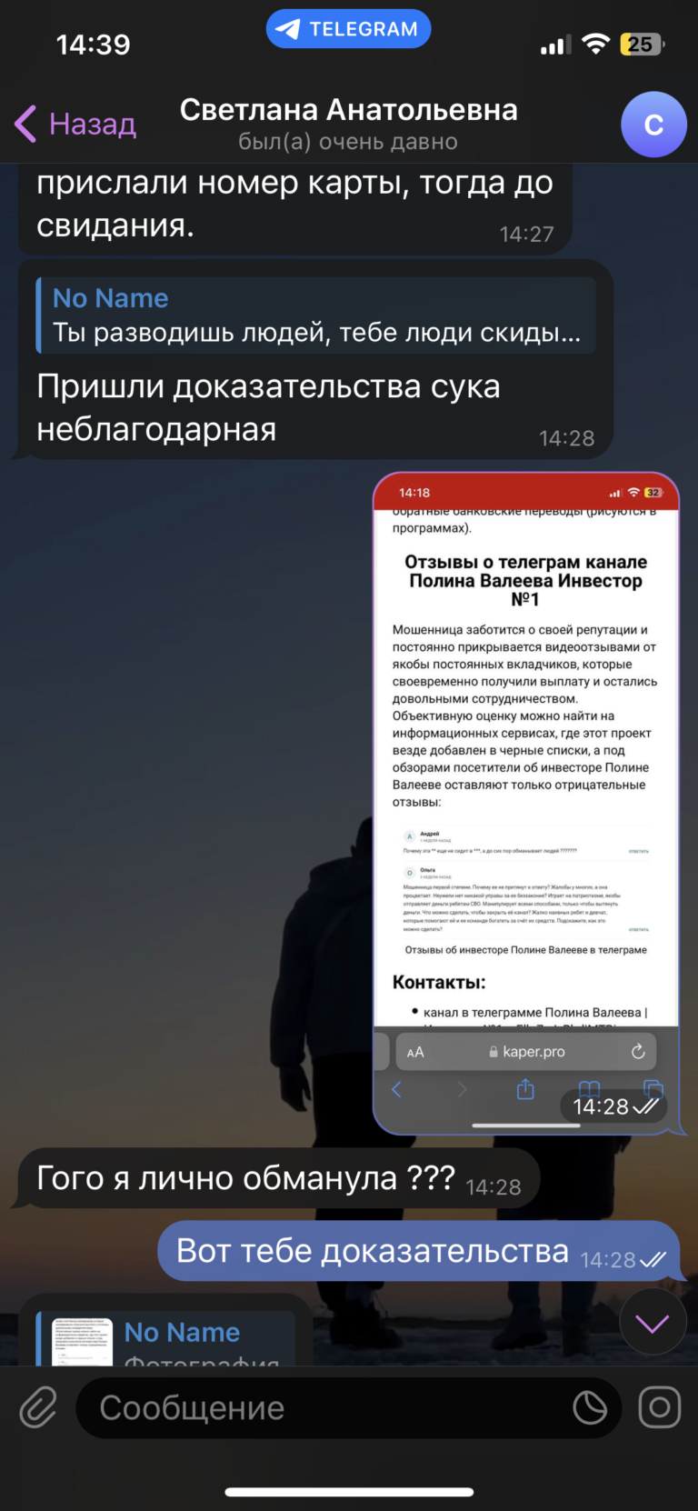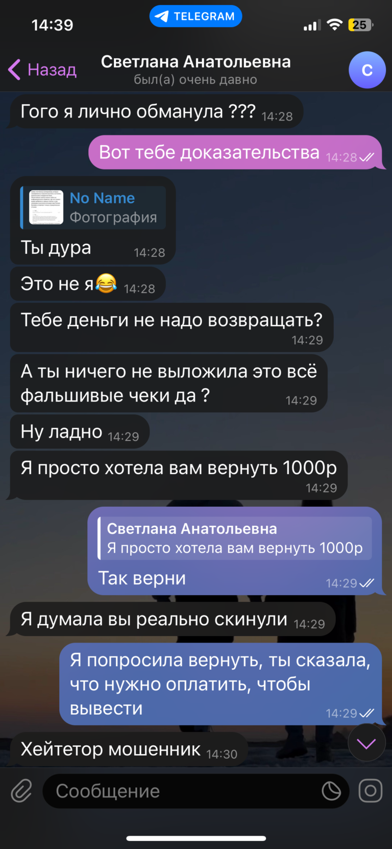 Здравствуйте. Меня обманула мошенница на 1000₽ (Полина Валеева) так еще и оскорбила меня
