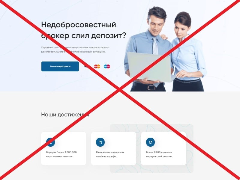 Единственная услуга в продуктовой линейке European Legal Alliance (ELA) – возврат денег клиентам по процедуре Чарджбэк, перечисленных на счета брокеров мошенников. При этом компания не скупиться на громкие обещания – на главной странице сайта указано, что с их помощью обманутые пользователи смогут вернуть деньги с вероятностью 96%, тогда как самостоятельно эта цифра достигает только 15%.