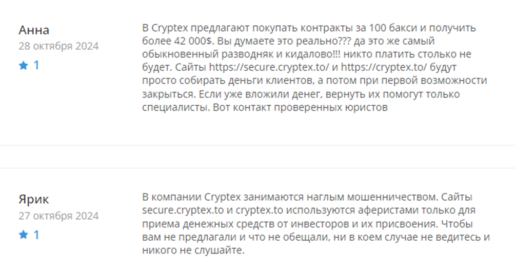 Негативные отзывы о Cryptex поступают от людей, которые стали жертвами этой финансовой пирамиды. Многие из них выражают свои опасения по поводу отсутствия прозрачности и обещаний, которые не были выполнены. Основные жалобы касаются: